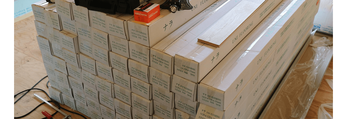 フローリングの材料もドサっと搬入されてました。