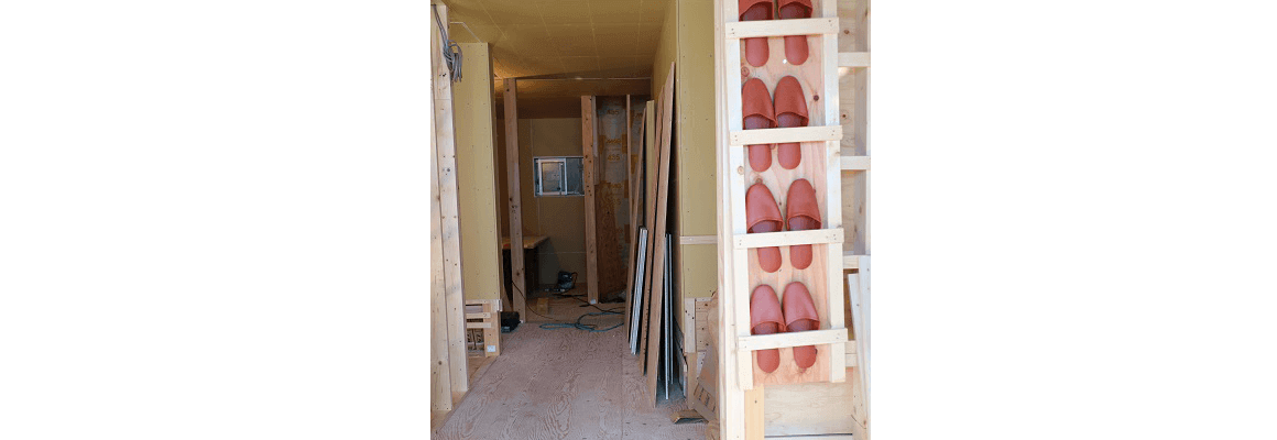 内装用の石膏ボードを貼り始めてました。